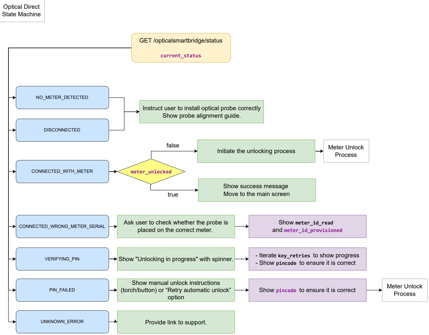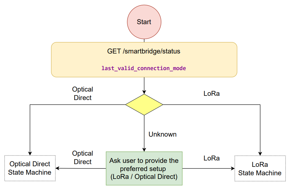 In case the last known hardware setup is optical direct, then the GET /opticalsmartbridge/status endpoint should be used to support the corresponding state machine: