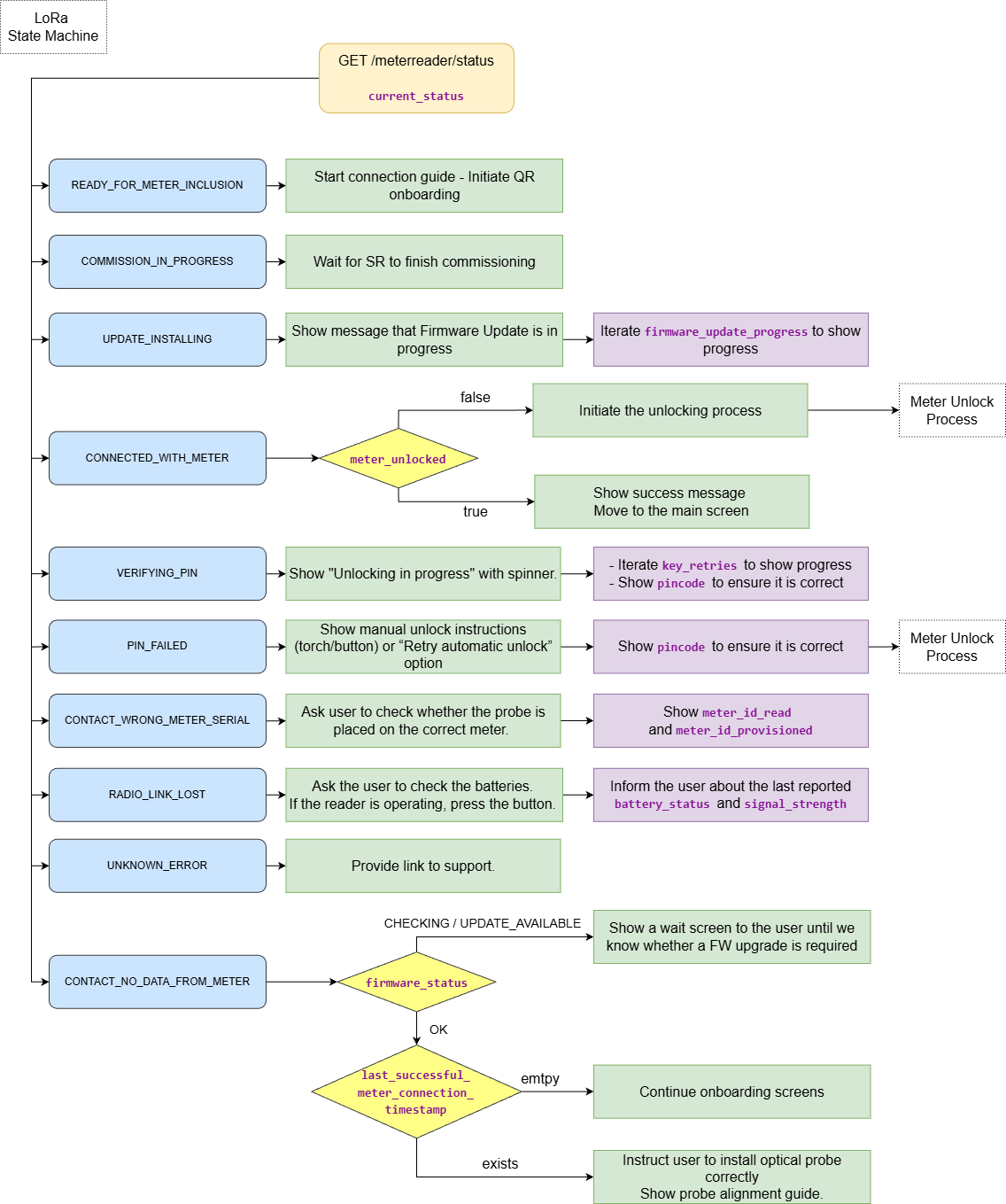 In case the last known hardware setup is optical lora, then the GET /meterreader/status endpoint should be used to support the corresponding state machine: