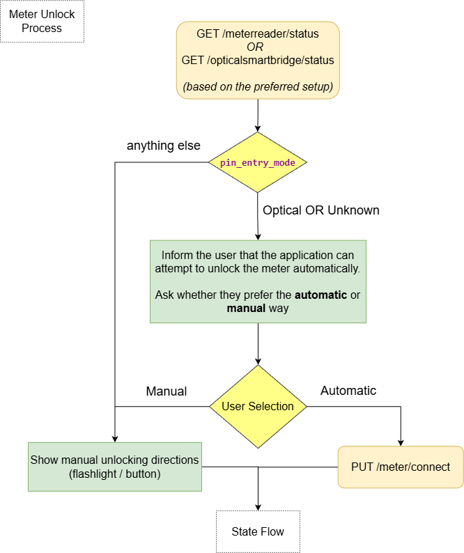 Some meters may lock again after events such as a power outage. Apps should always assess the meter’s unlock state via the CE-API and guide the user through the unlocking process again if required.